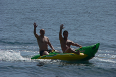 Aboard Lady Tatiana we have a Zodiac 3.8m rib with a Yamaha 40HP outboard and a Yamaha 760E jet bike. (Please note that NO GUEST WILL BE ALLOWED TO USE THE JET BIKE WITHOUT AN APPROPRIATE licence AND WITHOUT THE CAPTAINS PERMISSION). You can, with either the Yamaha rib and out board or the jet bike, water ski as well as enjoy surfing with the ringo and banana. Further water entertainment includes snorkelling gear and playing with two kayaks and the second dinghy (which we ordinarily carry).